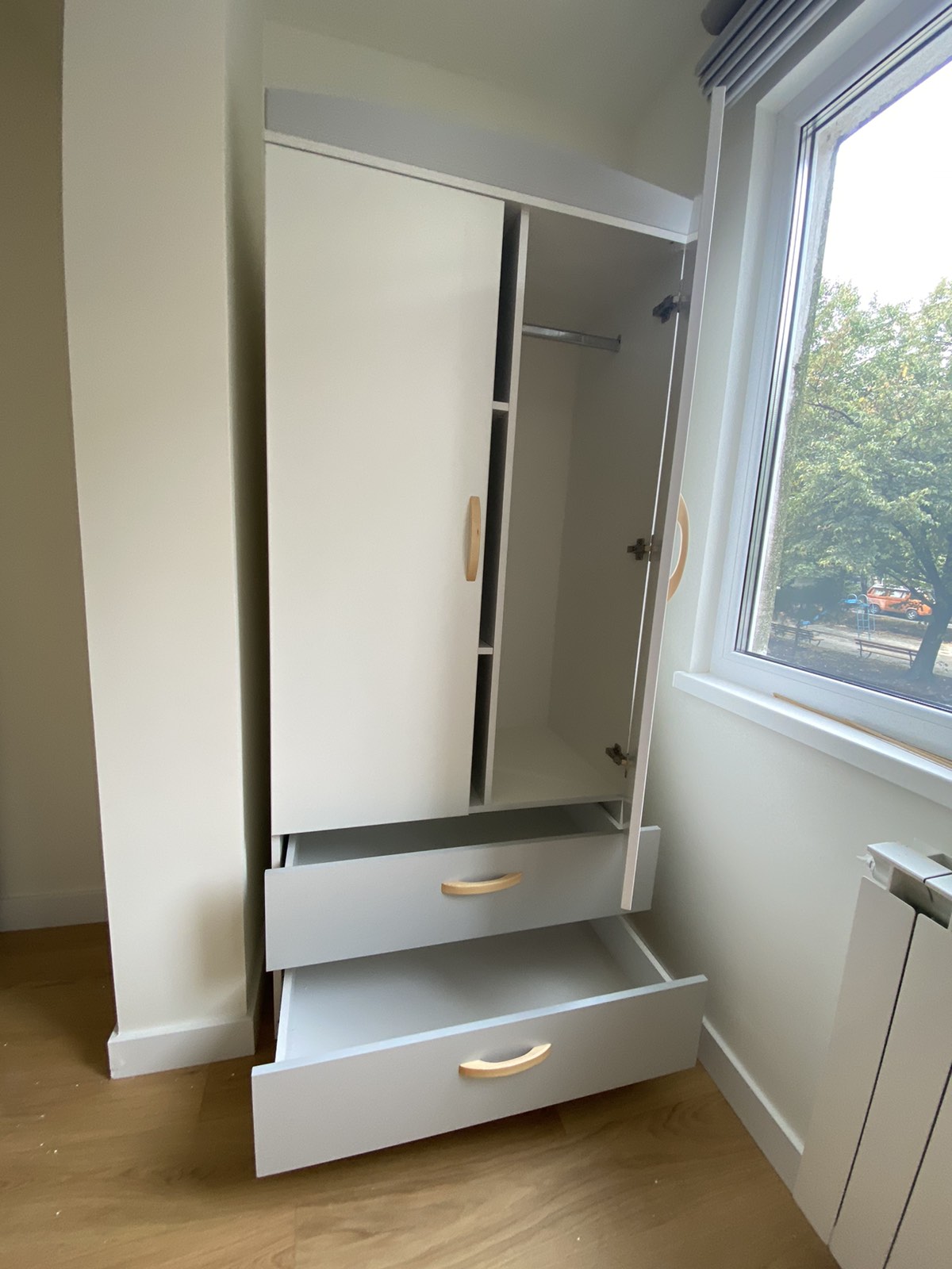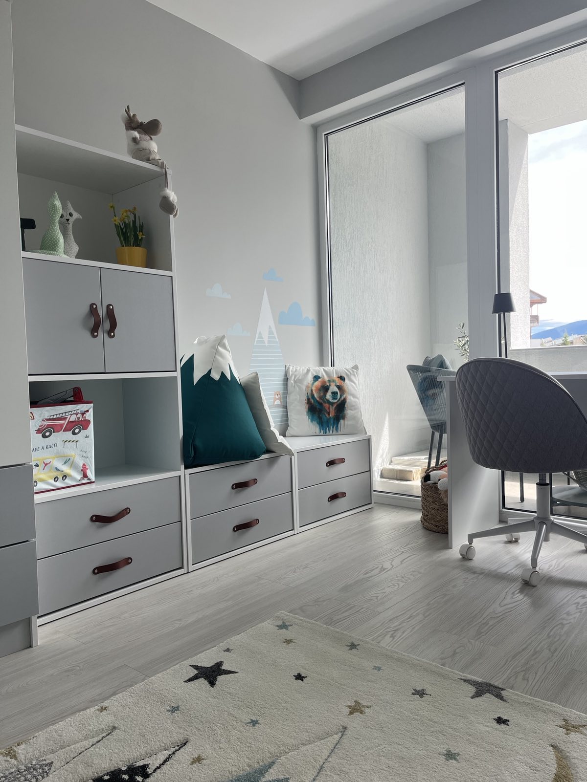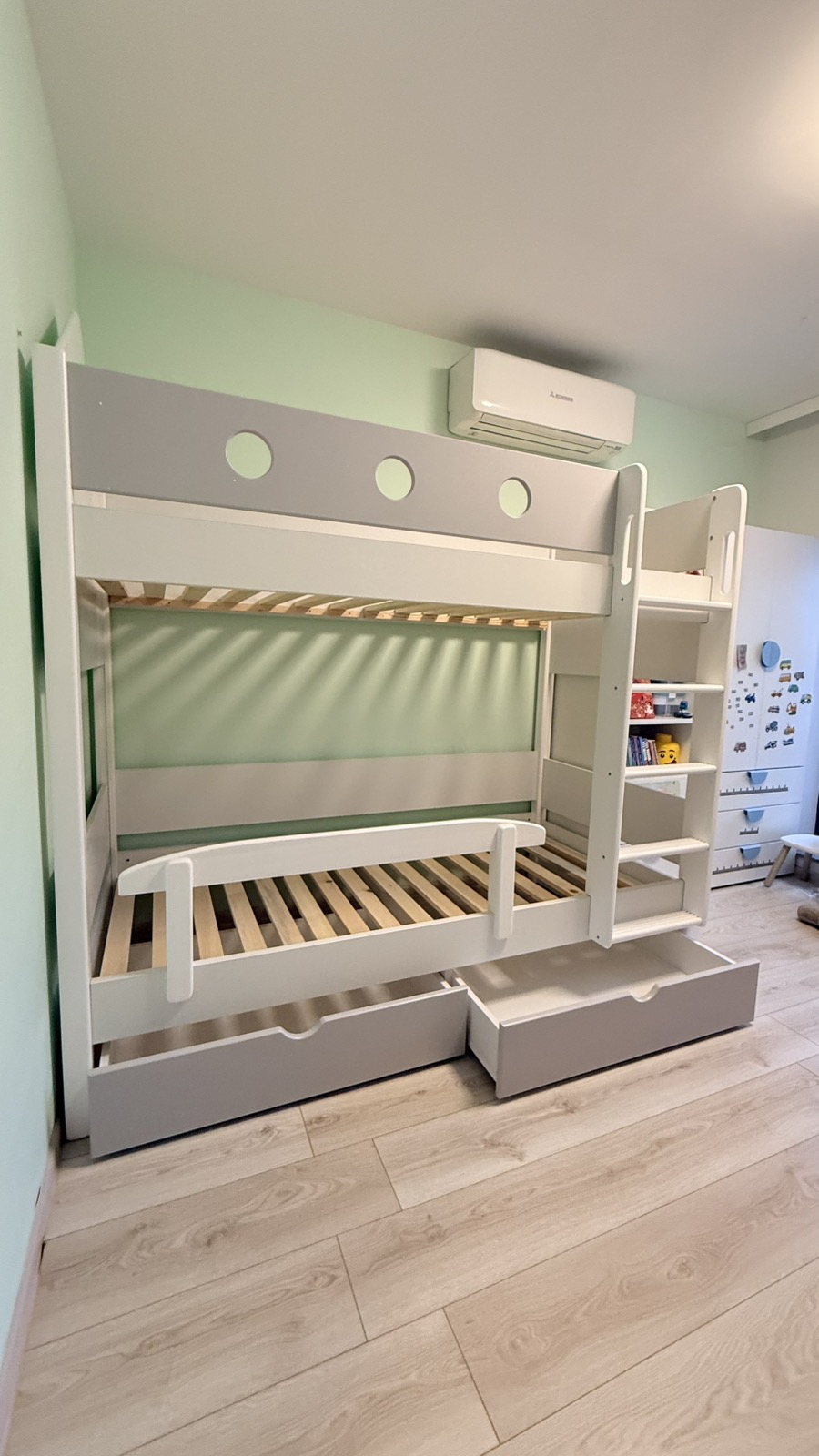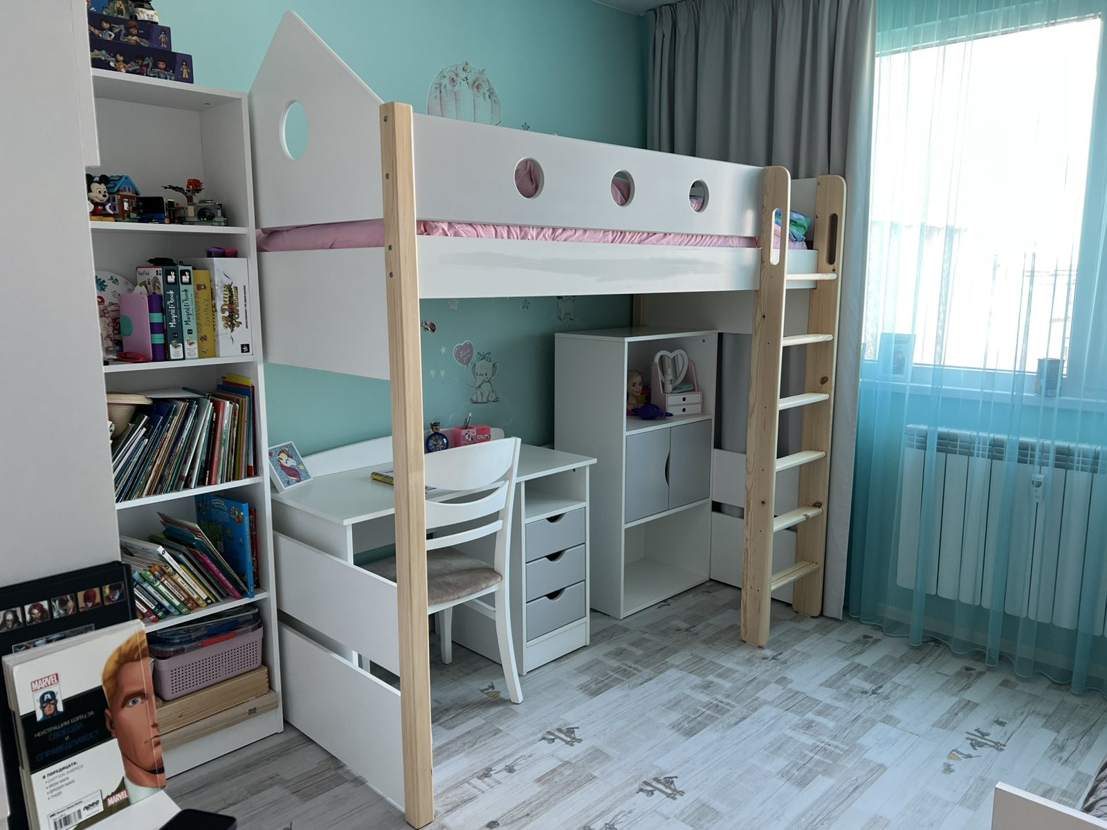 Успяхме да си обособим идеално малкото пространство в детската стая, така че да има място и за игра и за сън. Децата са много щастливи и много харесаха новата си стая!