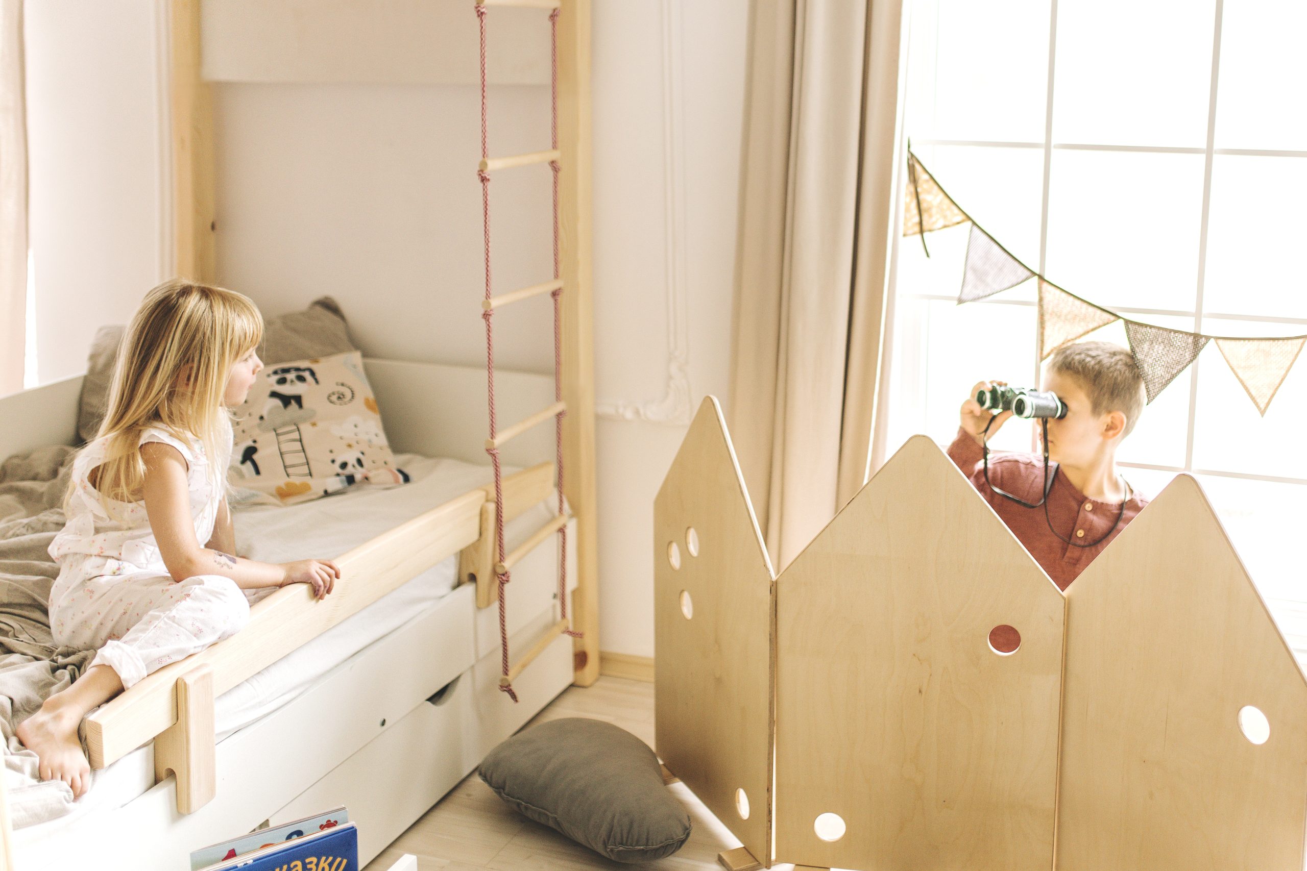 Patul înalt vă oferă posibilitatea de a folosi spațiul de dedesubt pentru joacă, depozitare, un al doilea pat sau un colț de studiu cu birou.