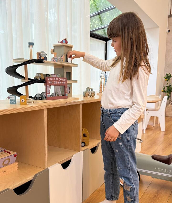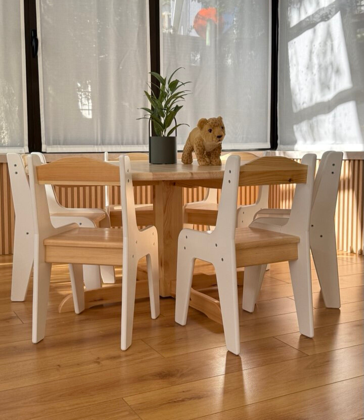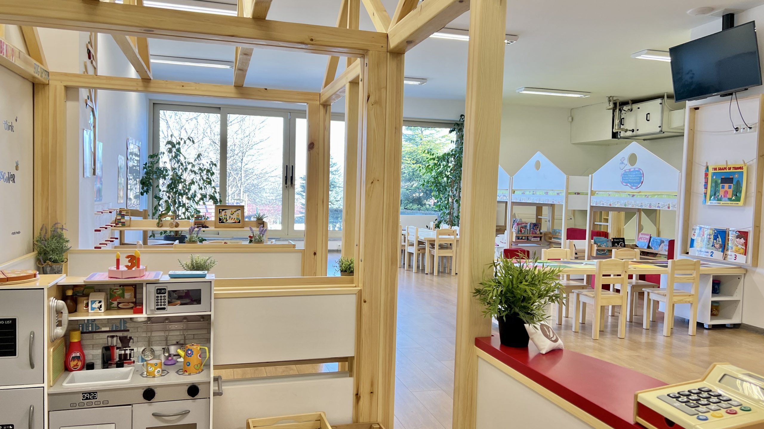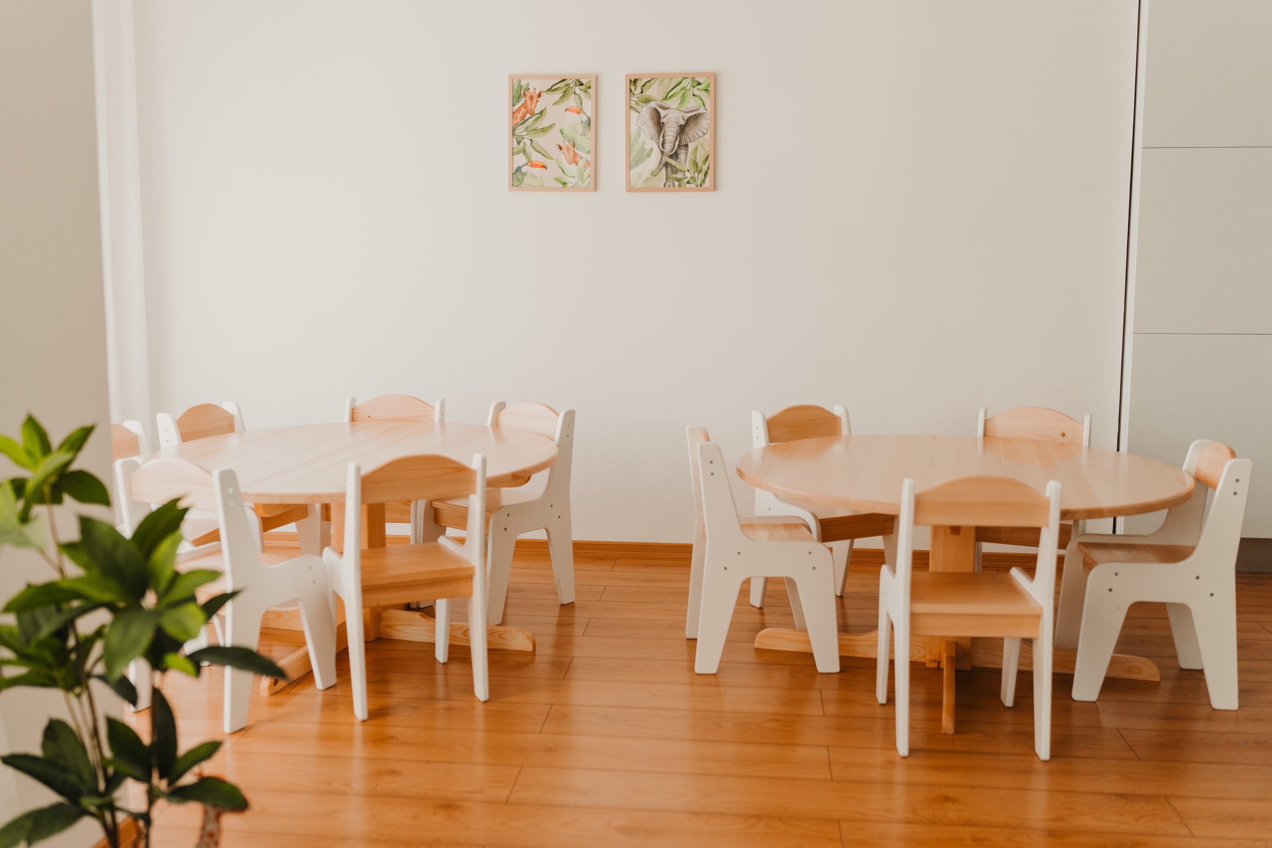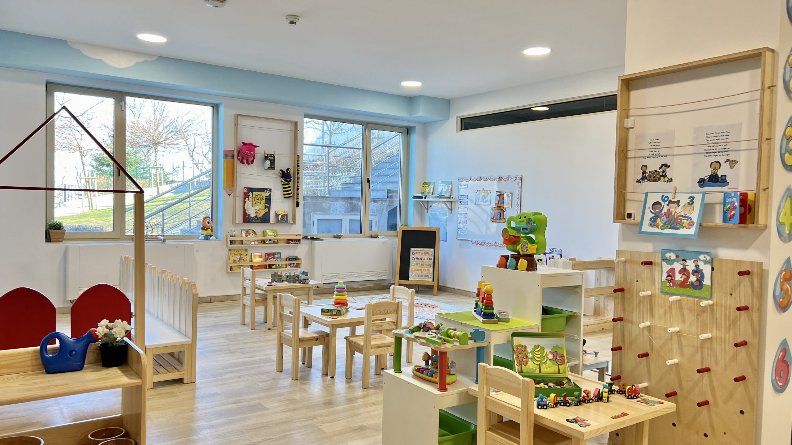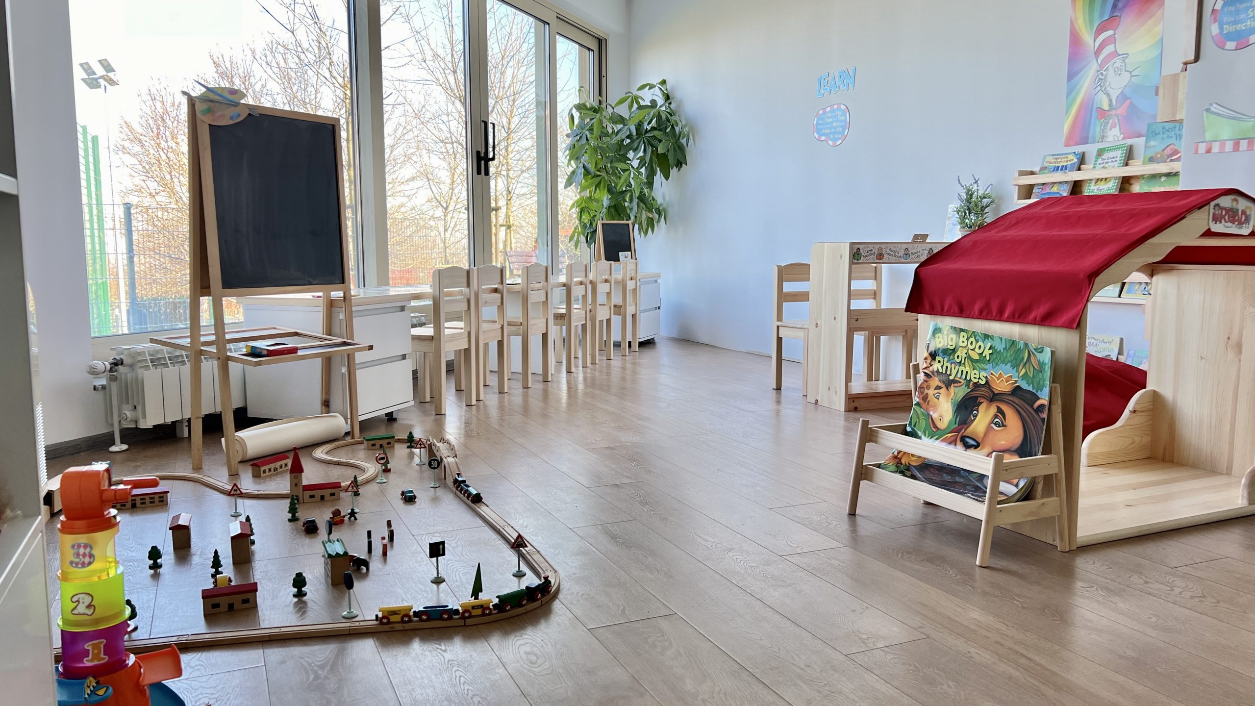 Am amenajat toate spațiile – atât grupa de creșă, cât și zonele destinate copiilor mai mari. Au fost realizate paturi individuale și paturi supraetajate, adaptate vârstei și ritmului zilnic al copiilor, mese pentru scris și desen, scăunele, căsuțe pentru citit, etajere pentru cărți, bănci și dulapuri pentru încălțăminte, care asigură ordine și confort în spațiile comune.