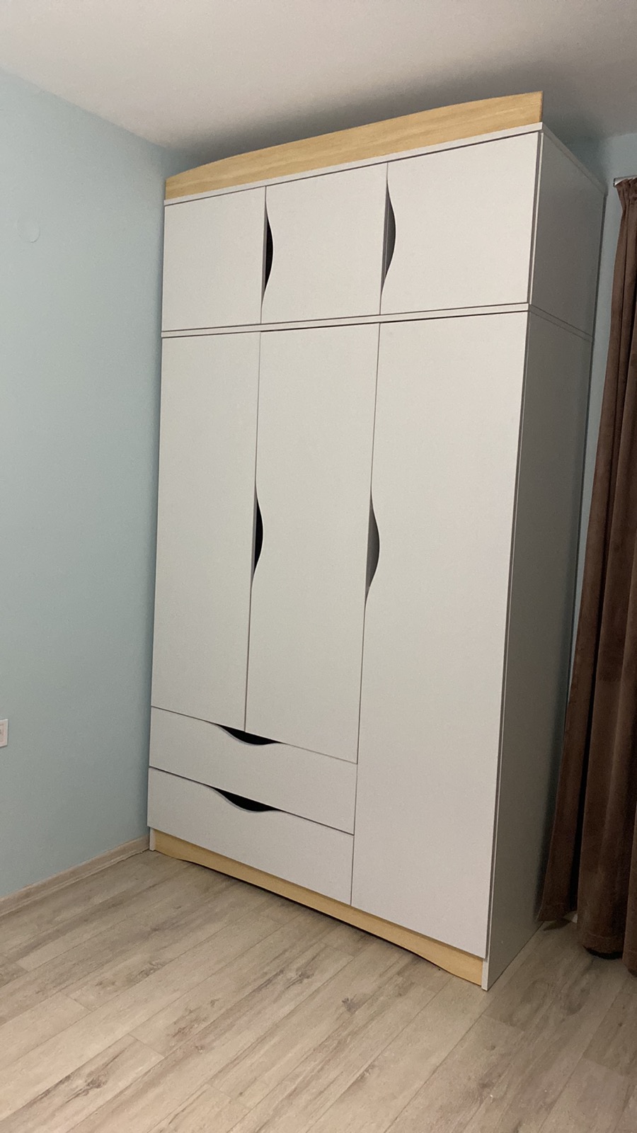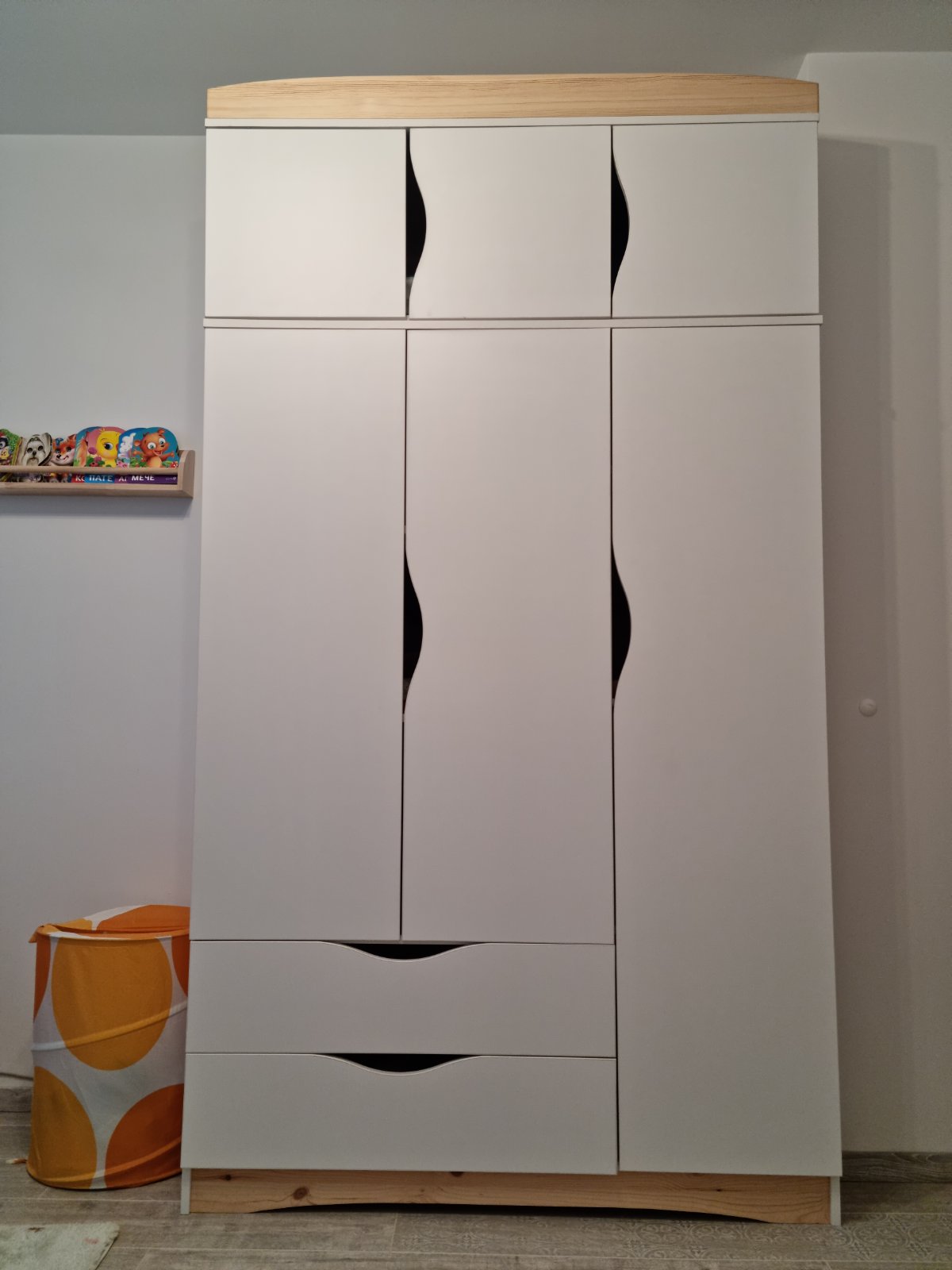 Много добра изработка, супер функционални размери, шкафовете и вратичките се отварят и затварят лесно и са с механизми. Единствено малко съжалявам, че не поръчахме гардероба да е с дръжки.