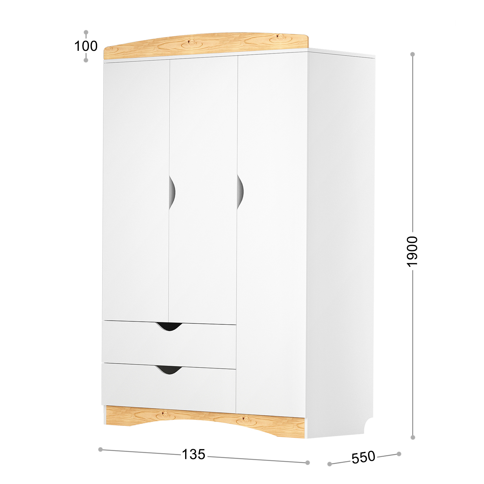 135 × 55 × 200 cm (include blat superior de 10 cm)