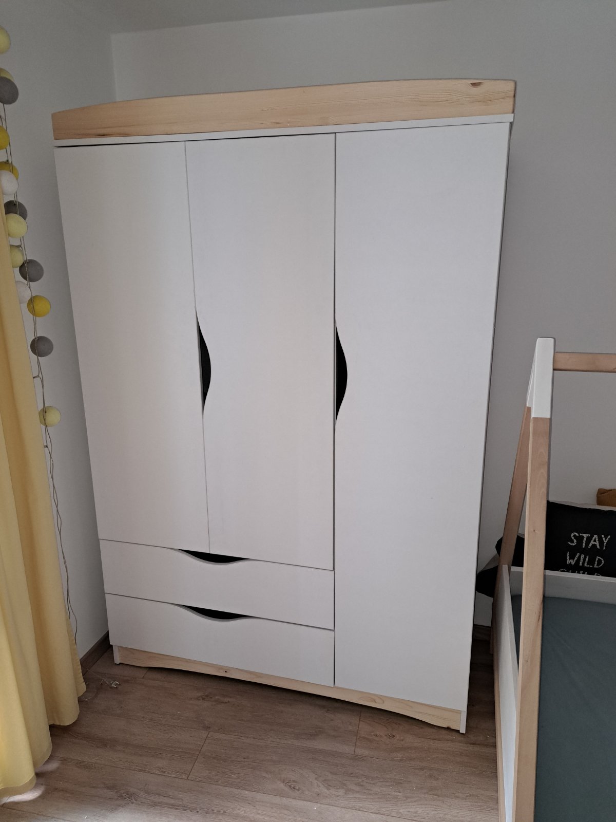 Corp din PAL de 18 mm, blat superior și soclu din lemn masiv de pin (20 mm)