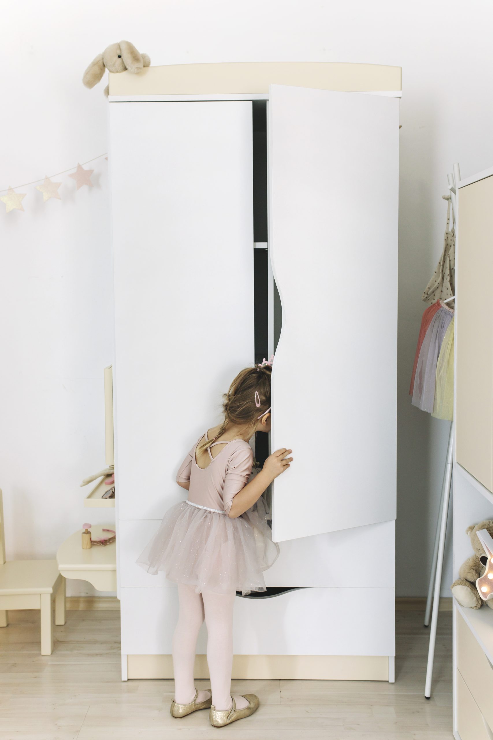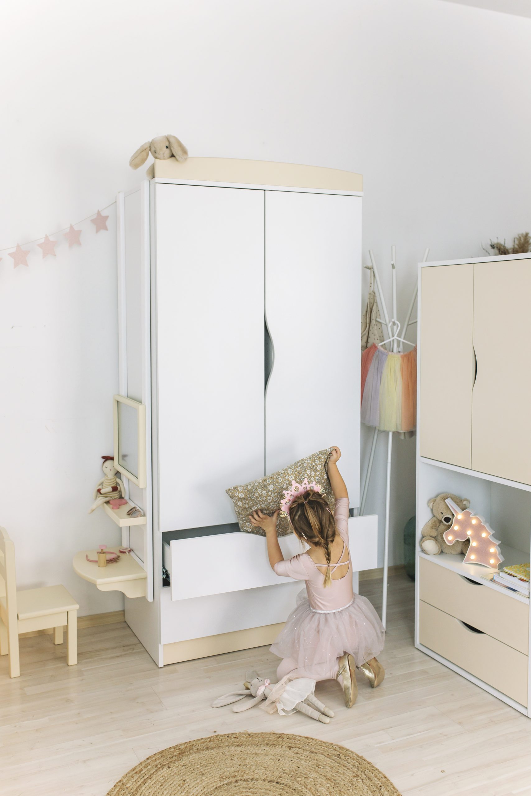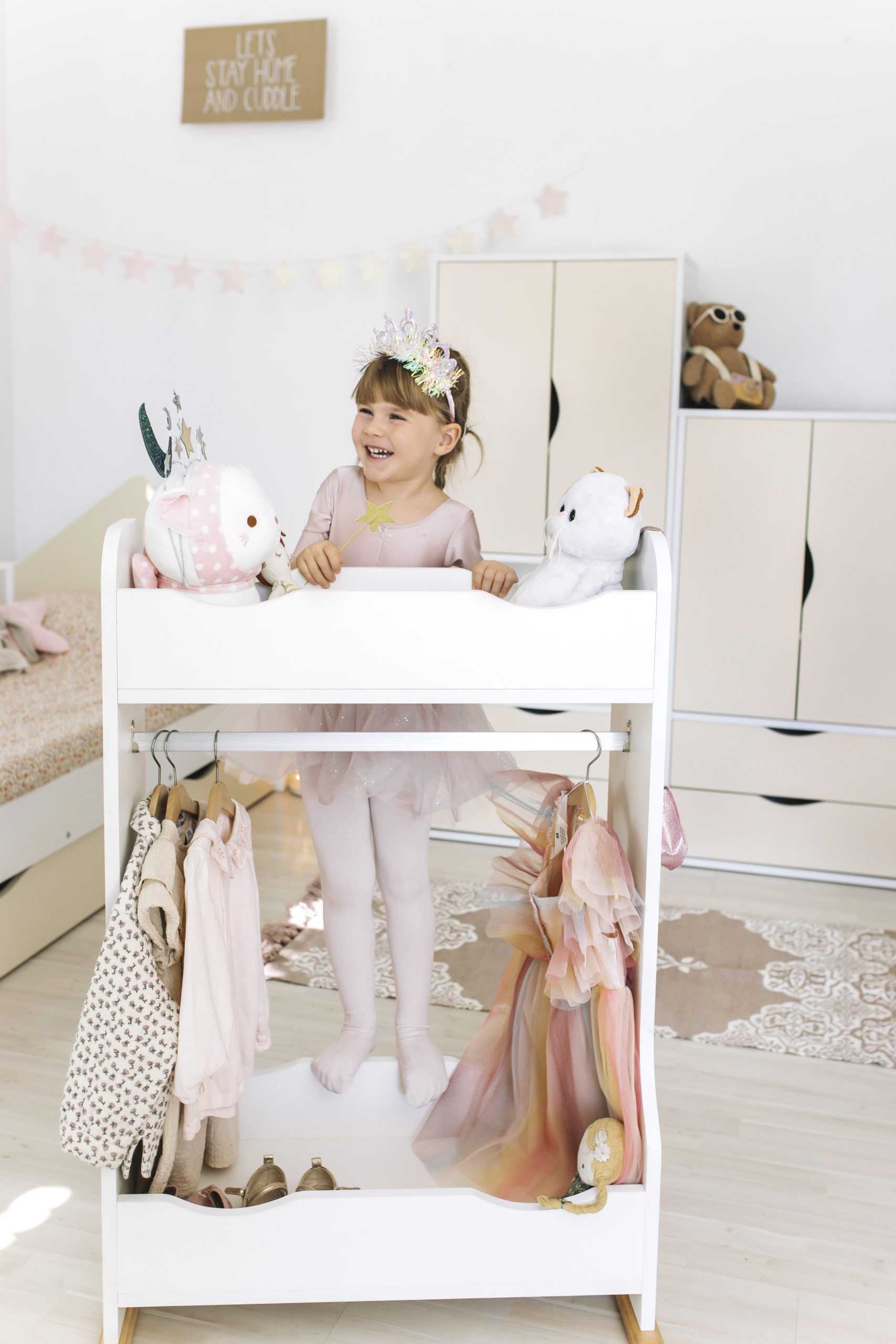 Micul dulap deschis inspiră copiii la multe jocuri, dar îi încurajează și să își organizeze singuri lucrurile. Este compact, dar în același timp poate găzdui foarte multe haine, jucării și accesorii.