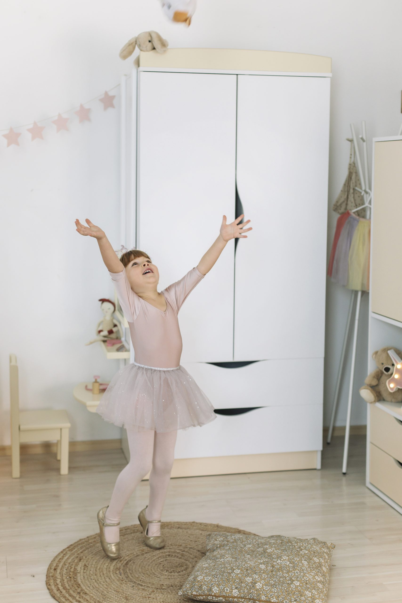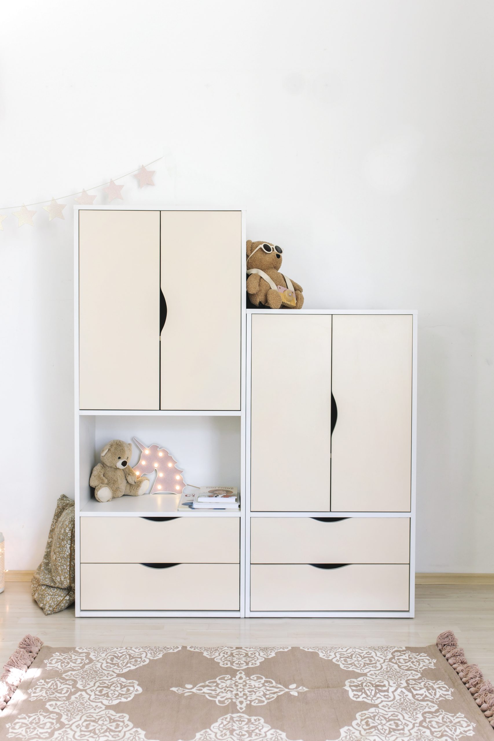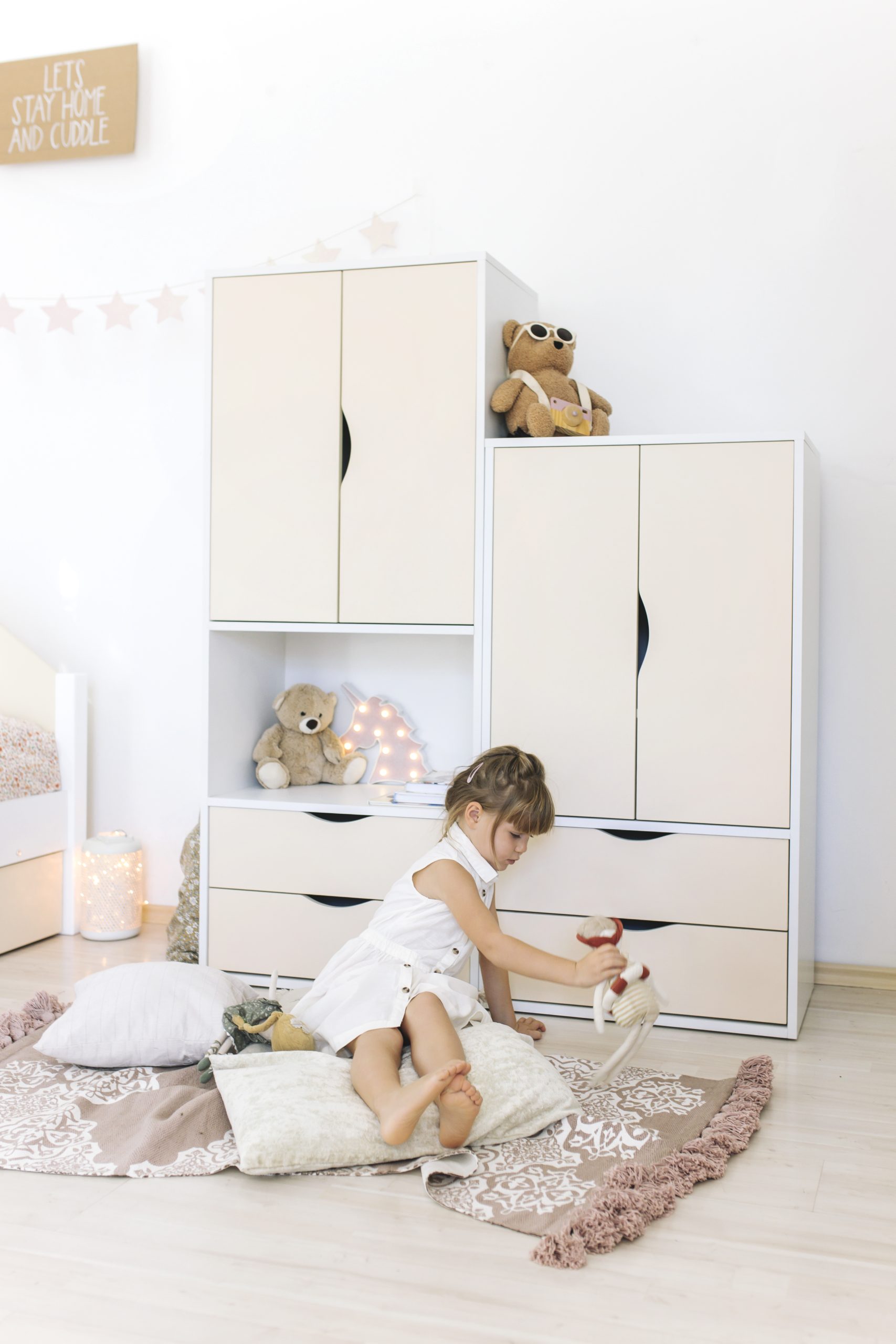 Micul dulap deschis inspiră copiii la multe jocuri, dar îi încurajează și să își organizeze singuri lucrurile. Este compact, dar în același timp poate găzdui foarte multe haine, jucării și accesorii.